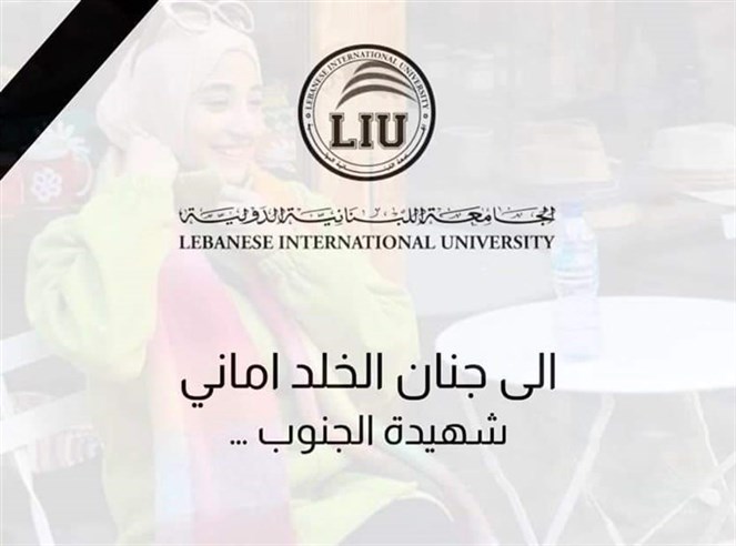 نعت الجامعة اللبنانية الدولية – LIU موظفتها المواطنة أماني برجاوي التي استشـهـدت إثر استهداف العدو الإسرائيلي لمبنى سكني في مدينة النبطية مع أفرادٍ آخرين من عائلتها .. ” شهيدة الجنوب “