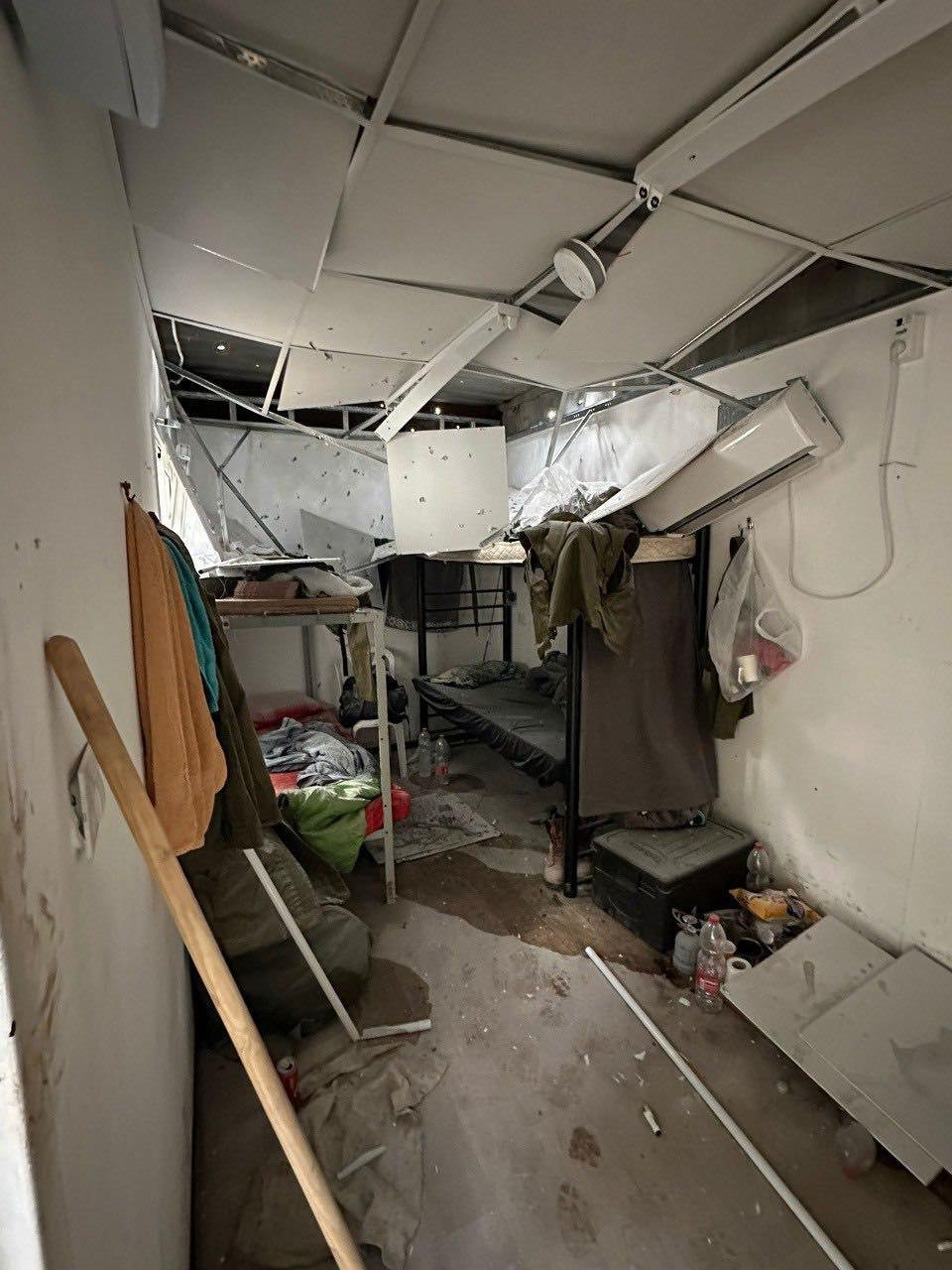 بالصورة مصادر عبرية: آثار انفجار طائرة مسيَرة داخل غرفة مبيت للجنود في قاعدة “بيت هيلل” قرب الحدود مع لبنان صباح اليوم.