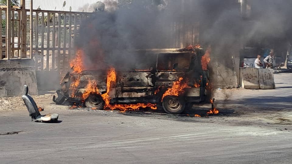 حريق شب في “فان” لنقل الركاب في حي السلم.