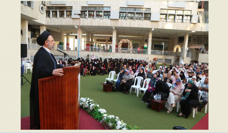 تابع: “همنا ان يكون وطننا حرا عزيزا مستقلا غير مرتهن لهذا المحور أو ذاك، تحكمه العدالة والمساواة، لا ان يكون على هامش الأمم وساحة للاخرين يتلاعبون بمقدراته ويرسمون الخطط للسيطرة على واقعنا”، واشار إلى ان “رسالة هذه المؤسسات كانت وستبقى تربي جيلا يملك كل مقومات المعرفة والثقافة والاخلاق والانسانية جيلا رساليا متسلحا بالعلم والوعي ويكون امينا على تحمل مسؤولية الحفاظ على هذا الوطن وقادرا على مواجهة كل الضغوط والتحديات”.