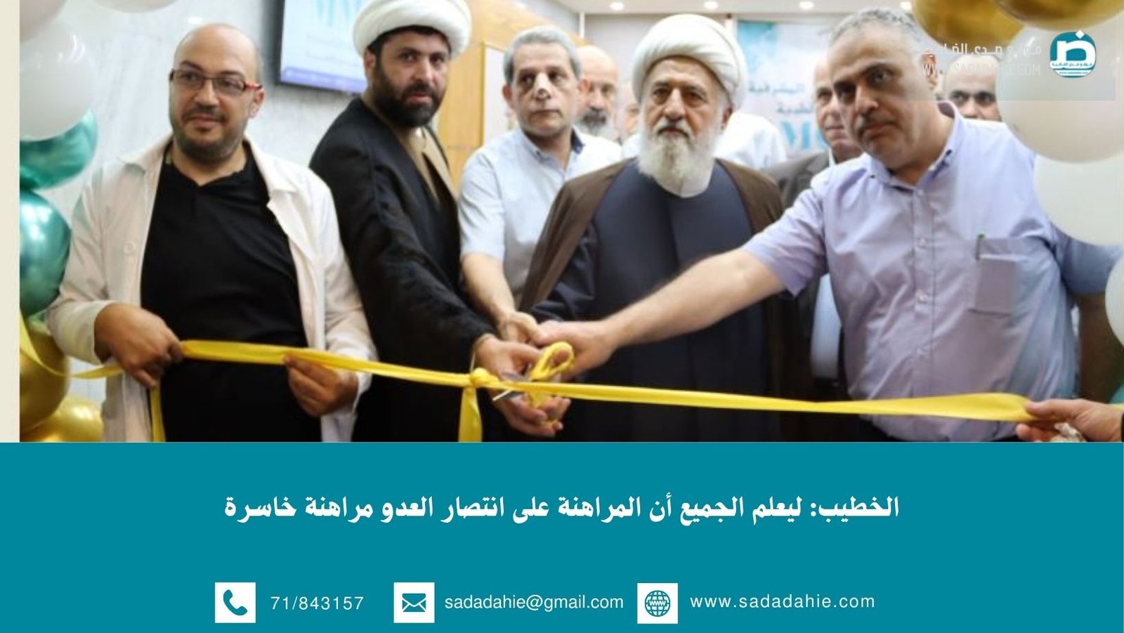 وأهمية إفتتاح هذا المركز في هذا الوقت، ليس فقط لتقديم بعض الخدمات الطبية لبعض المحتاجين وإنما تأتي في ظل الظروف التي نعيشها، وهي ظروف حرب على بلدنا ومجتمعنا، حرب عسكرية وإعلامية واقتصادية بكل وجوه الحرب ، تُخاض ضد هذا المجتمع المضحّي والعظيم وخصوصاً في منطقة الضاحية الجنوبية التي كانت موئلا لكل عمل خير و حاضنة لأوائل الذين عملوا في هذا المضمار وبنوا في سبيل مجتمعنا المؤسسات واحتضنوا المقاومة، وكانوا الى جانبها ووقفوا في وجه ظلم الدولة التي عملت للأسف بكل جهد وتخطيط، وليس عملاً عشوائياً من أجل أن تبقى مناطقنا محرومة من كل شيء يمكن أن يقيم أود هذا المجتمع”.