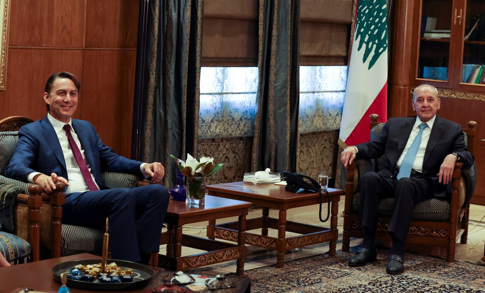 استقبل رئيس مجلس النواب نبيه بري، في مقر الرئاسة الثانية في عين التينة، الموفد الرئاسي الاميركي آموس هوكستين والوفد المرافق، بحضور السفيرة الاميركية لدى لبنان ليزا جونسون ورئيس لجنة مراقبة تنفيذ وقف إطلاق النار الجنرال جاسبر جيفرز والمستشار الإعلامي للرئيس بري علي حمدان، وتناول اللقاء عرض للأوضاع العامة في لبنان والمنطقة، لا سيما السياسية والميدانية منها، على ضوء مواصلة إسرائيل خروقاتها لبنود وقف اطلاق النار وعمل لجنة المراقبة.