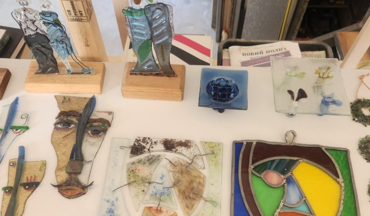 وخلال الزيارة، جلب الفنانون المرافقون للوفد قطعًا من الزجاج المكسور “التي تم جمعها من مناطقهم المتضررة بفعل الحرب الأخيرة وقاموا بتحويلها إلى أعمال فنية، تعبر عن روح الإبداع والتحدي في مواجهة الدمار”.