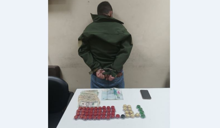 بتاريخ ٣١-١٢-٢٠٢٤، تمّ رصده في محلّة الزّوق، حيث تم توقيفه، بالجرم المشهود، أثناء قيامه بالتّرويج على متن سيارة نوع i10، بالرغم من محاولته صدم أحد عناصر الدّوريّة بهدف الفرار.بتفتيشه والسّيّارة، ضُبِطَ بحوزته:
