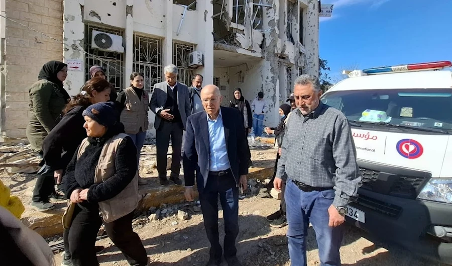 زار رئيس مؤسسة عامل الدولية، كامل مهنا، أحياء مدينة الخيام التي تعرضت لعمليات نسف وتخريب ممنهج، متفقداً مركز المؤسسة الصحي الاجتماعي التنموي، المدمر بشبه كامل.