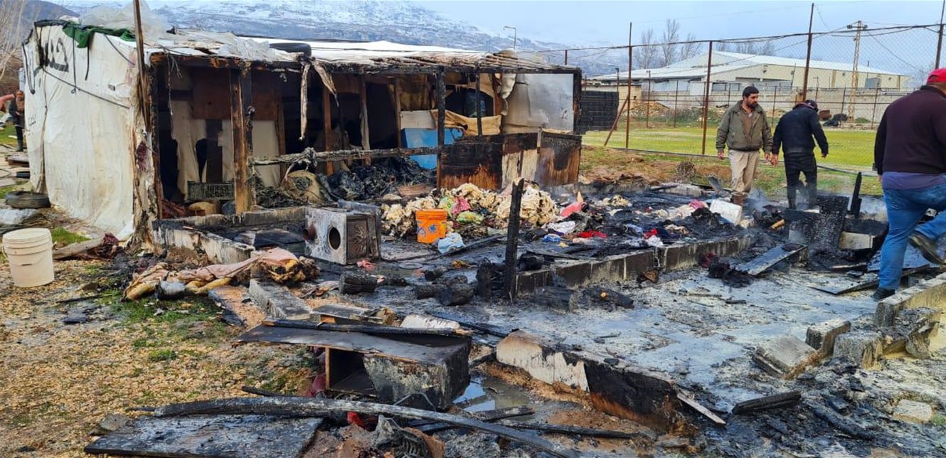 إندلاع حريق في مُخيم النازحين السوريين في قب الياس.