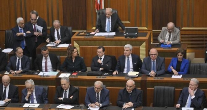 عقد مجلس النواب اللبناني الثلاثاء جلسته لمناقشة البيان الوزاري برئاسة الرئيس نبيه بري وحضور الحكومة برئاسة نواف سلام والوزراء الاعضاء.