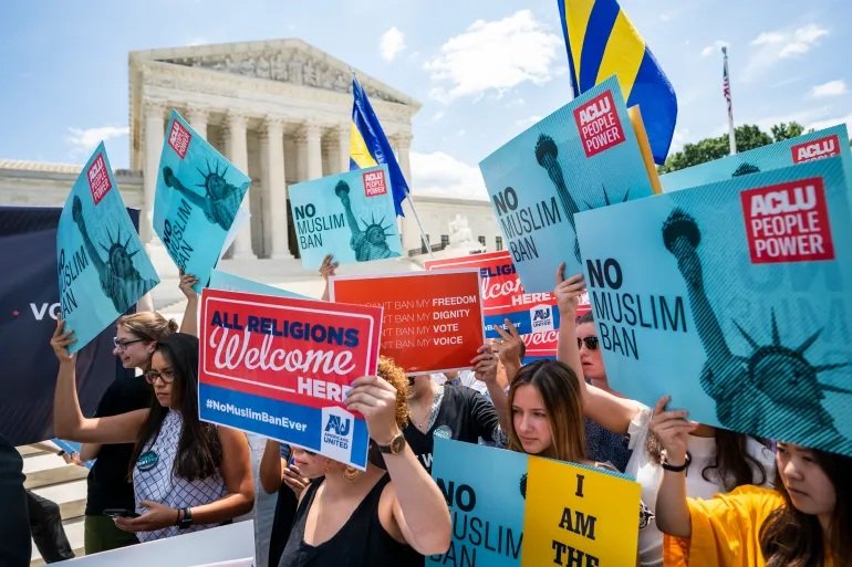 وسبق أن فرض ترامب في مستهل ولايته الأولى حظرا على المسافرين من 7 دول ذات أغلبية مسلمة (سوريا والعراق وليبيا والصومال والسودان واليمن وإيران) بحجة حماية الأميركيين من الإرهاب، حسب زعمه، وهي السياسة التي أثارت تنديداً في الداخل والخارج، وخضعت للكثير من الأخذ والرد، قبل أن تؤيدها المحكمة العليا في عام 2018.