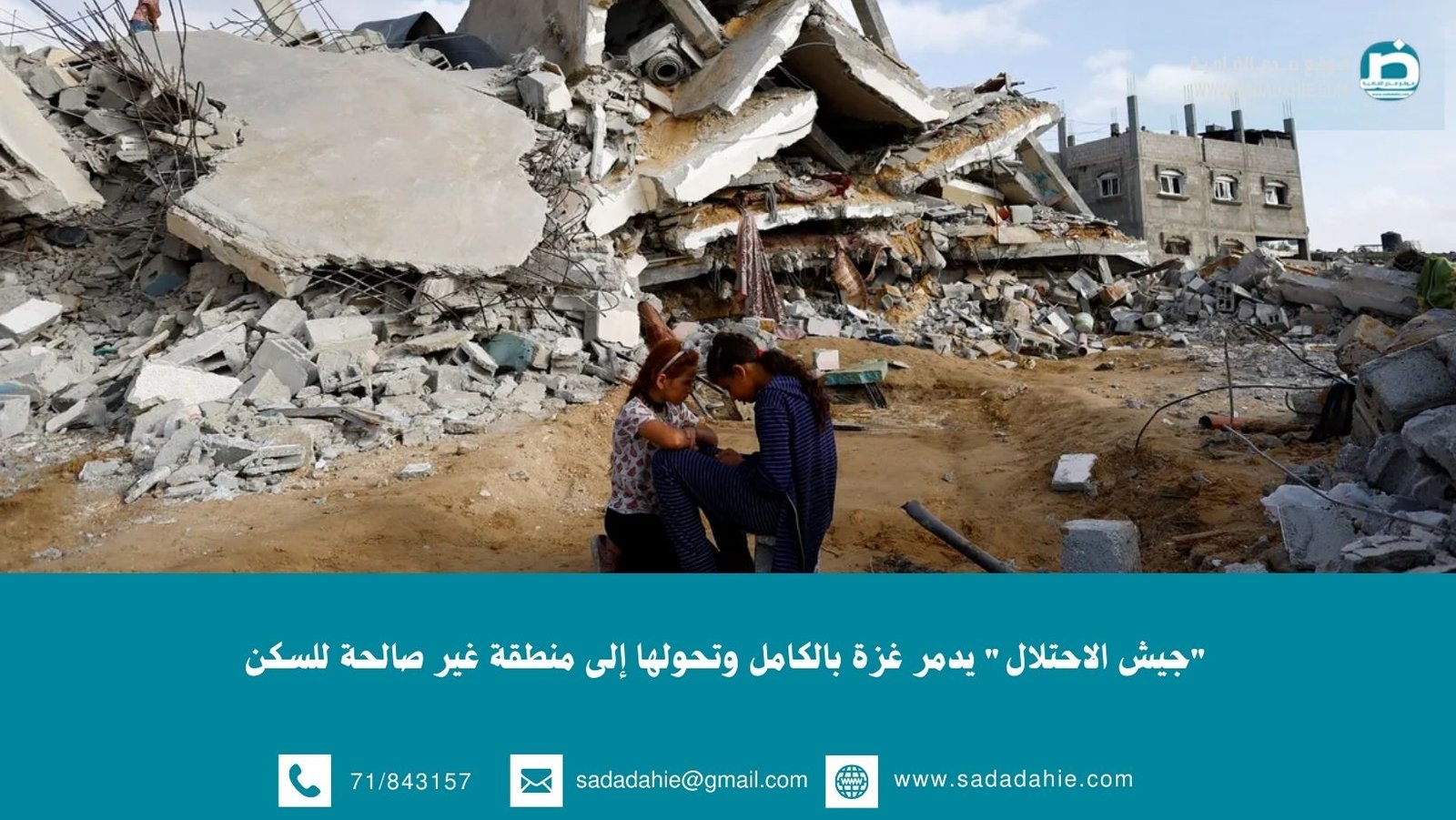 “جيش الاحتلال” يدمر غزة بالكامل وتحولها إلى منطقة غير صالحة للسكن