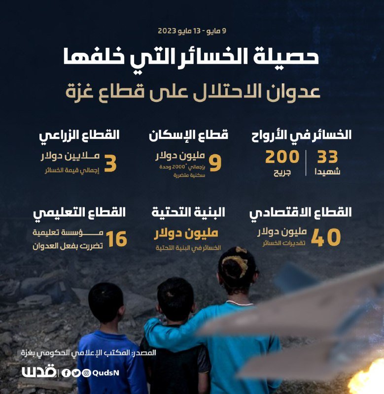 33 فلسطينياً ارتقوا و200 أصيبوا، وخسائر بعشرات ملايين الدولارات.. إليكم حصيلة الخسائر التي خلفها عدوان الاحتلال على قطاع غزة.