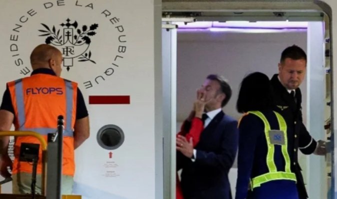 وأثار المقطع الذي التقطته وكالة “أسوشيتد برس” الأميركية من داخل الطائرة الرئاسية الفرنسية بُعيْد هبوطها في هانوي في بداية جولة آسيوية، ضجة واسعة على الشبكات الاجتماعية.