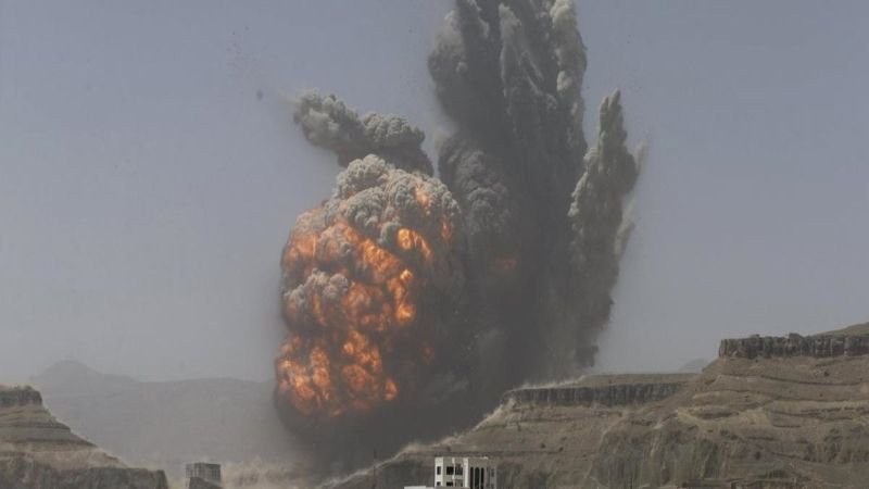 طيران العدوان السعودي يلقي قذائف على مديرية شدا اليمنية