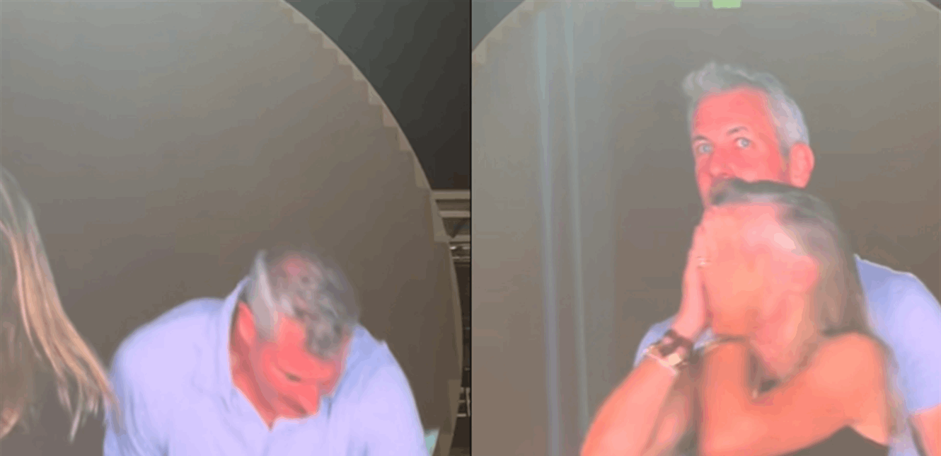 وأظهرت اللقطات بايرون وهو يحاول الانسحاب من الكادر، بينما غطّت كابوت وجهها واستدارت بعيدًا، في محاولة لتجنّب الكاميرا.