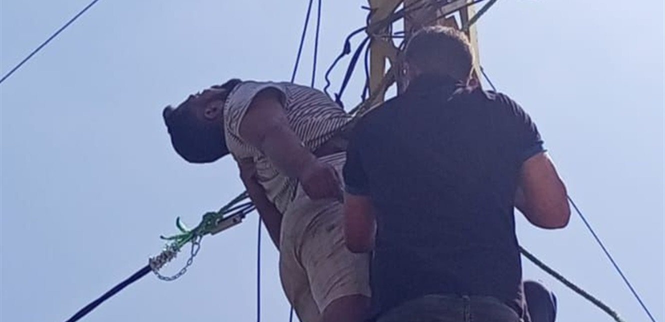 وقد عملت فرق الإسعاف على إنزاله من على العمود، وتم نقله إلى أحد المستشفيات في المنطقة لتلقي العلاج اللازم.