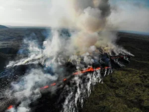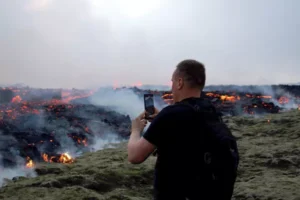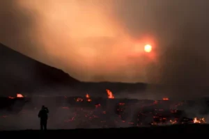 أفاد مكتب الأرصاد الجوية في أيسلندا بأن ثوراناً بركانياً بدأ في 10 تموز الجاري، على بعد نحو 30 كيلومتراً من العاصمة الأيسلندية ريكيافيك، للمرة الثالثة خلال عامين، والذي تتدفق منه حمم بركانية في المنطقة.