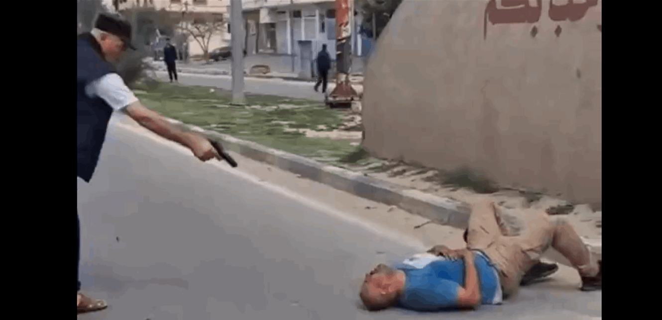 وظهر عدد من المسلحين في مدينة دير البلح، بينهم كبار وصغار، يحملون أسلحة رشاشة، ويقتادون أحد الأشخاص، وسط صيحات متوالية لقتله، قبل أن يتم إجلاسه في مواجهة أحد الجدران في الميدان وإطلاق الرصاص عليه بغزارة شديدة.