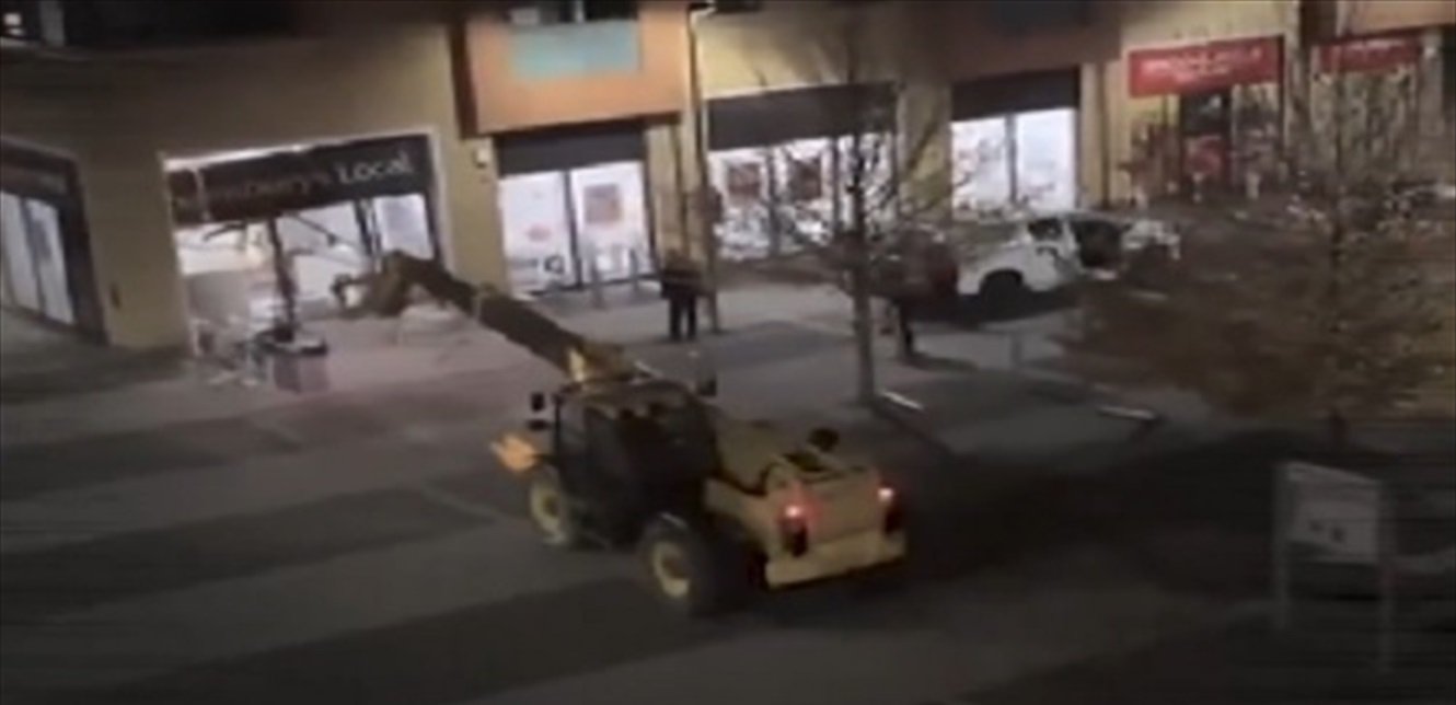 بالفيديو… اقتلعوا الصراف الآلي باستخدام رافعة!