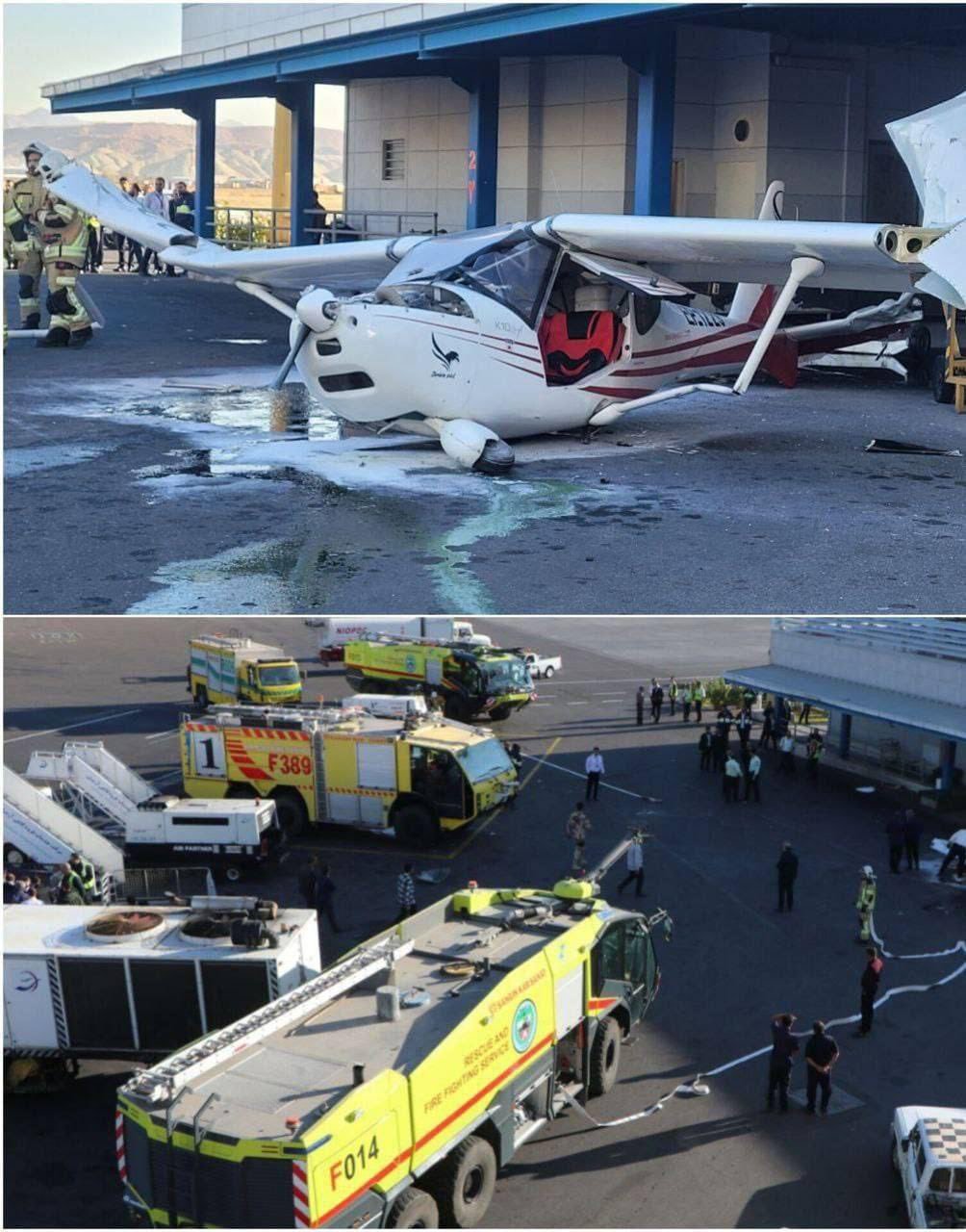 حادث في مطار تبريز- إيران.. اصطدام طائرة خفيفة بأحد المباني بعد خروجها عن السيطرة أثناء الهبوط حيث اقتصرت الأضرار على الماديات.