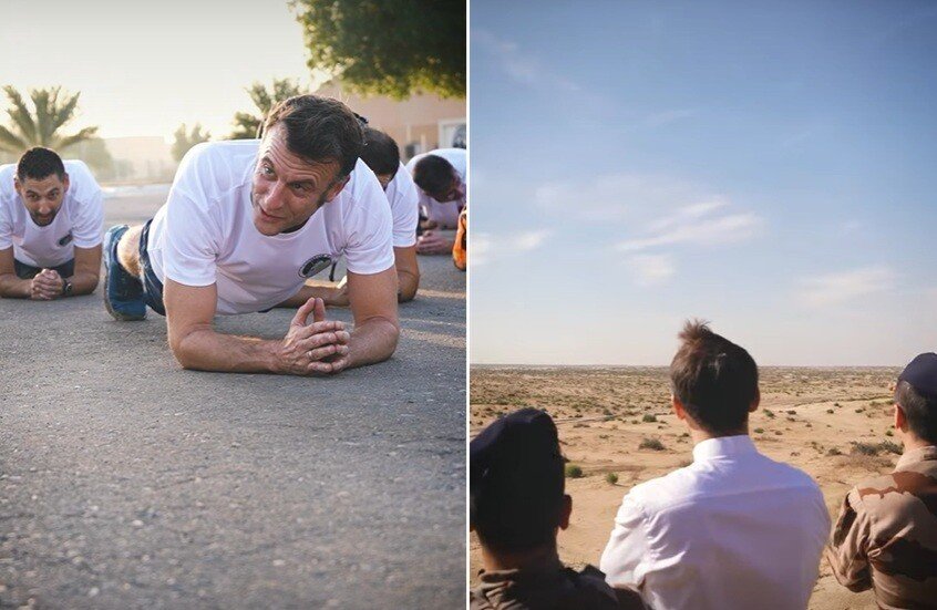 ونشر ماكرون مقطع فيديو وثق اللحظات التي رافق فيها القوات الفرنسية في الإمارات.