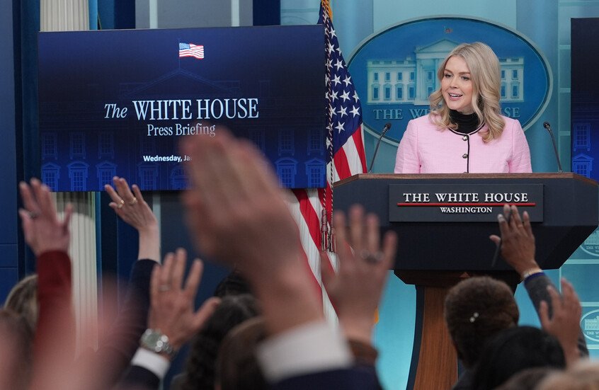 المتحدثة باسم البيت الأبيض، كارولين ليفيت، تتحدث خلال مؤتمر صحفي في البيت الأبيض الييوم الأربعاء.