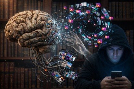 عندما يصبح المحتوى اليومي مجزأ، سريع الإيقاع، قصير المدة، ومبنياً على الإثارة اللحظية، يتعود الدماغ على نمط معالجة سطحي قائم على القفز السريع بين المحفزات بدل التعمق فيها.