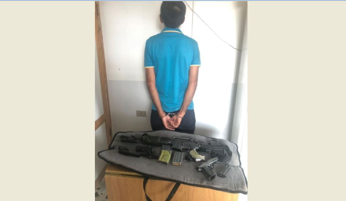 بالتاريخ ذاته، نفذت إحدى دوريات الشعبة مداهمة للمنزل المذكور، حيث تم توقيفه. وبتفتيش المنزل، تم ضبط بندقية حربية نوع “م 16” مع متمماتها ومسدس حربي مع ممشط.