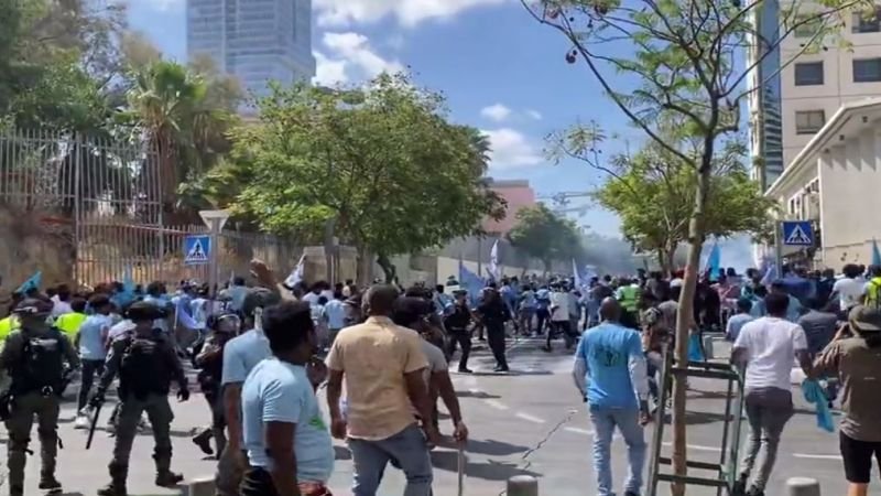 تدور اشتباكات عنيفة بين شرطة الاحتلال واليهود الإريتريين في “تل أبيب”.