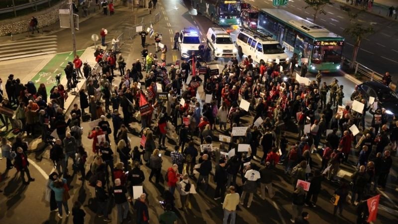للأسبوع الثامن على التوالي، نزل آلاف المستوطنين الصهاينة، مساء السبت 10/2/2024، إلى شوارع “تل أبيب” وحيفا، مطالبين بإقالة حكومة الاحتلال الحالية برئاسة بنيامين نتنياهو، وإجراء انتخابات مبكرة، والتوصل إلى صفقة تبادل لإعادة الأسرى من قطاع غزة.