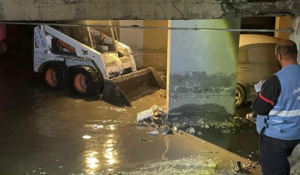 عناصر من الدفاع المدني التابع لجمعية كشافة الرسالة لإسلامية تزيل الأتربة والحجارة من أمام عدد من المباني في صور، تمهيدا لدخول السكان إلى شققهم.